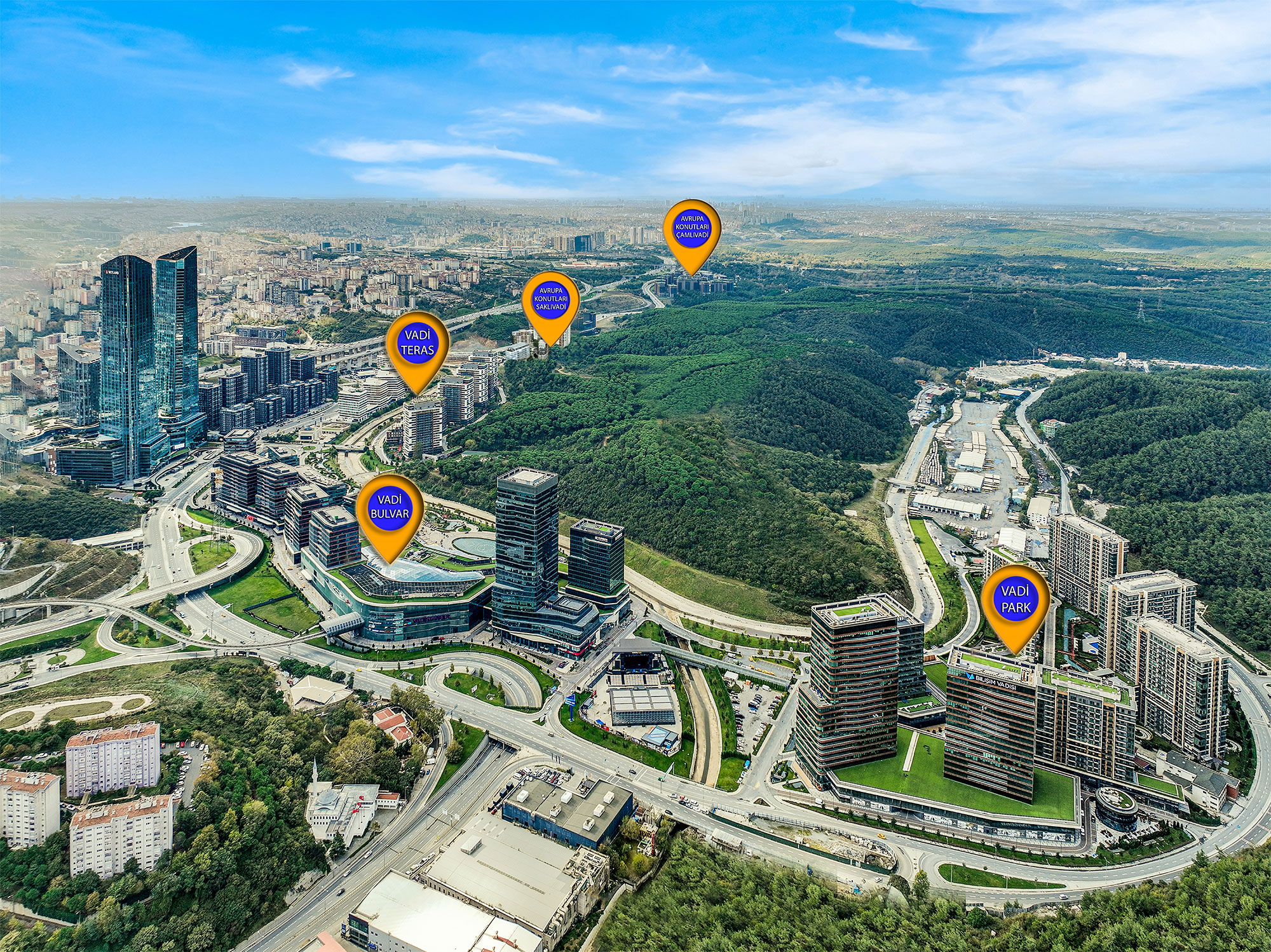 Vadistanbul Bulvar, which is Turkey's largest office complex, is the new center of the business world with its shopping street, indoor shopping mall and 5 star hotel. Turkey’s first private air-rail line, which is connected to the city's metro line, passes through the Vadistanbul Bulvar, the second step of the Vadistanbul.