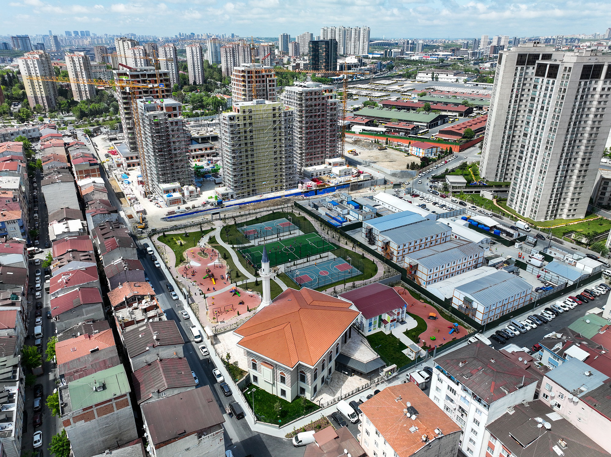 Avrupa Konutları TEM konut projesinin yanı başında okul, cami ve sağlık ocağı ile birlikte inşa edilmiştir.