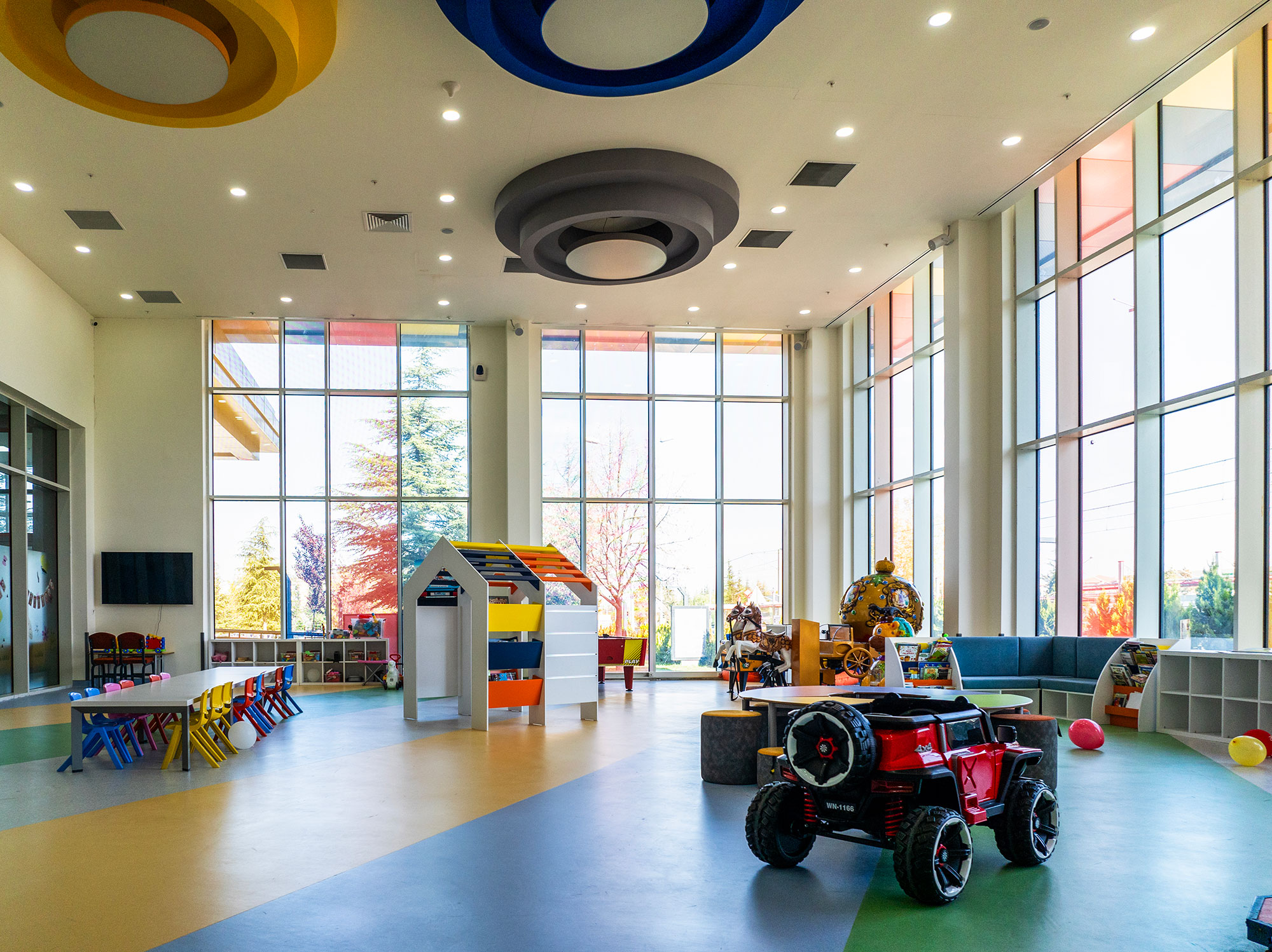 Toplam 145 metrekarelik alanda 1 adet etkinlik ve oyun odası, 1 adet mutfak, 1 adet yemek salonu ve lavabolar mevcuttur. Ayrıca bahçesi bulunmaktadır.